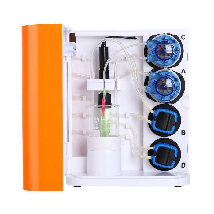- Alkatronic sám reguluje alkalitu pomocí čerpadla D a dávkuje roztoky KH, když dKH klesne pod nastavenou hodnotu.