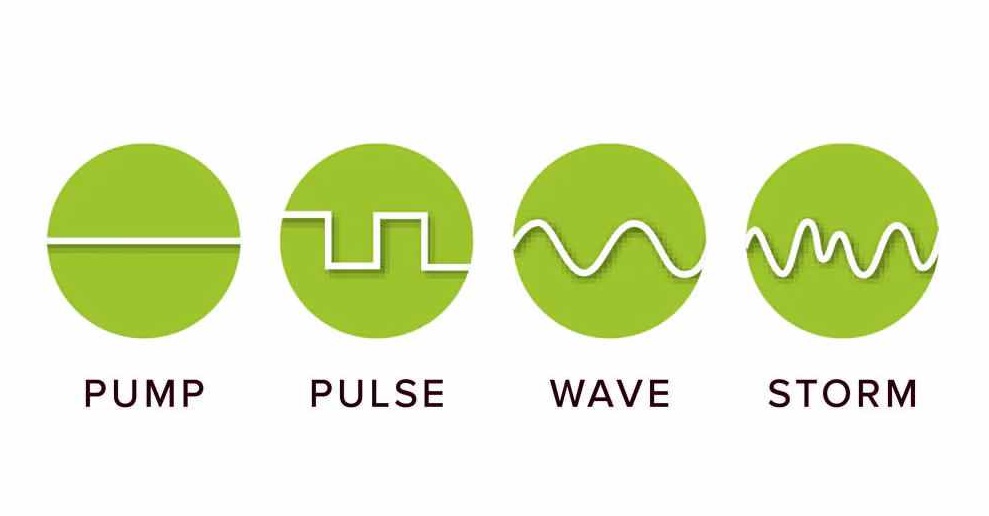 Storm mode: with variable frequency and flow rate - Adjustable min and max power setting in wave modes (30-100)