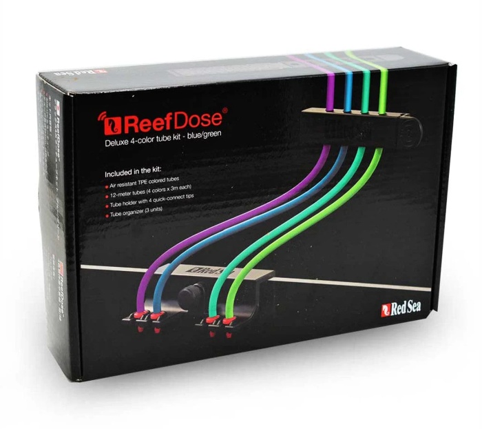 The ReefDose Deluxe 4-Color Tubing & Accessories Kit includes everything you need to connect your additives to your ReefDose pump and start dosing!