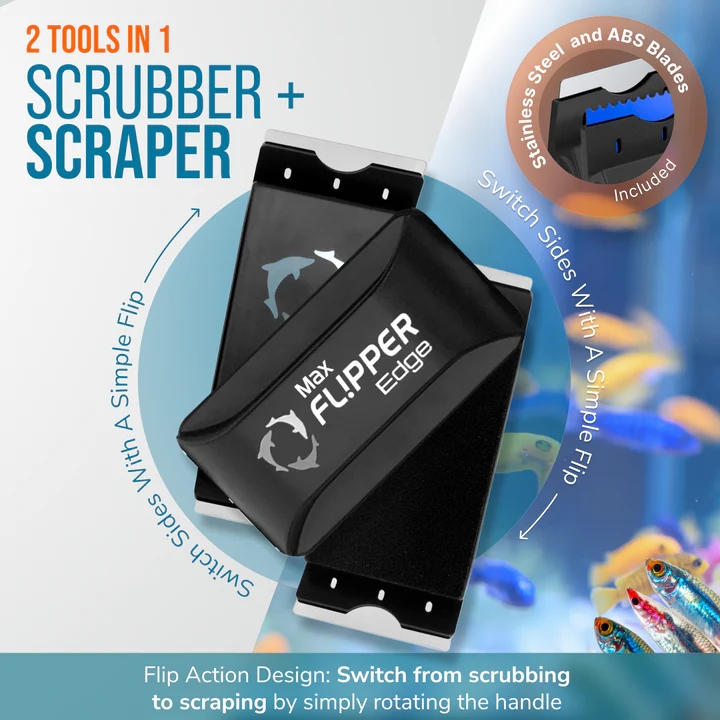 FLOAT. FL!P. SCRUB. & SCRAPE. Nyní s DVOJNÁSOBNOU čisticí silou! Patentovaný magnetický čistič akvárií 2 v 1 od společnosti FL!PPER Aquarium Products, nyní s duálními čepelemi. Jednoduše "FL!P" přehoďte z drhnucí strany na škrabku pouhým otočením rukojeti. Kompletní čištění akvária, aniž byste si museli namočit ruce! Nezbytný čisticí nástroj pro pokročilé akvaristy a profesionály v údržbě!