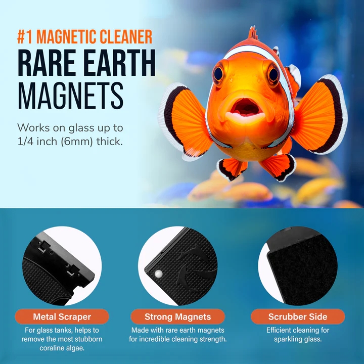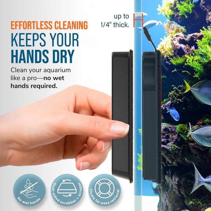 Patentovaný design Flipper vytváří jediný čistič akvárií 2 v 1, který se může překlopit z čistící podušky na škrabku pouhým otočením rukojeti.