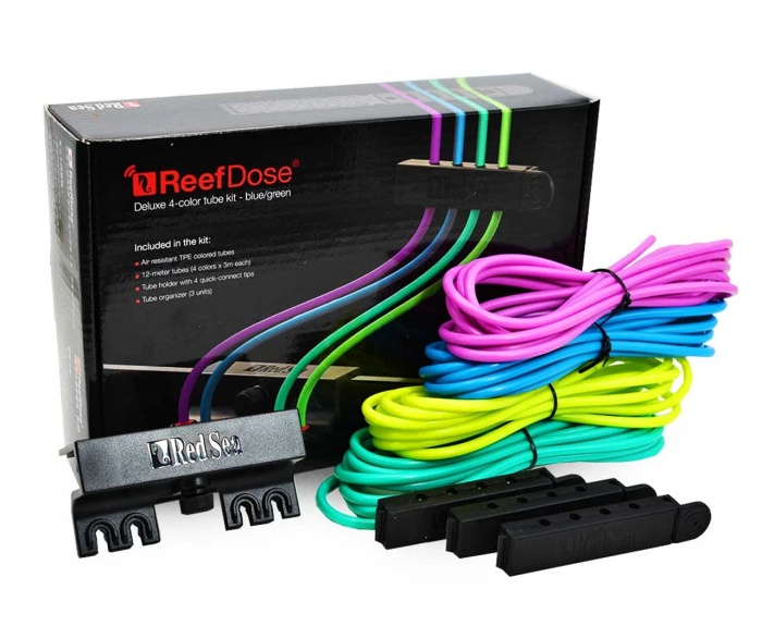 Sada ReefDose Deluxe 4-Color Tubing & Accessories Kit obsahuje vše, co potřebujete k připojení aditiv k čerpadlu ReefDose a k zahájení dávkování.