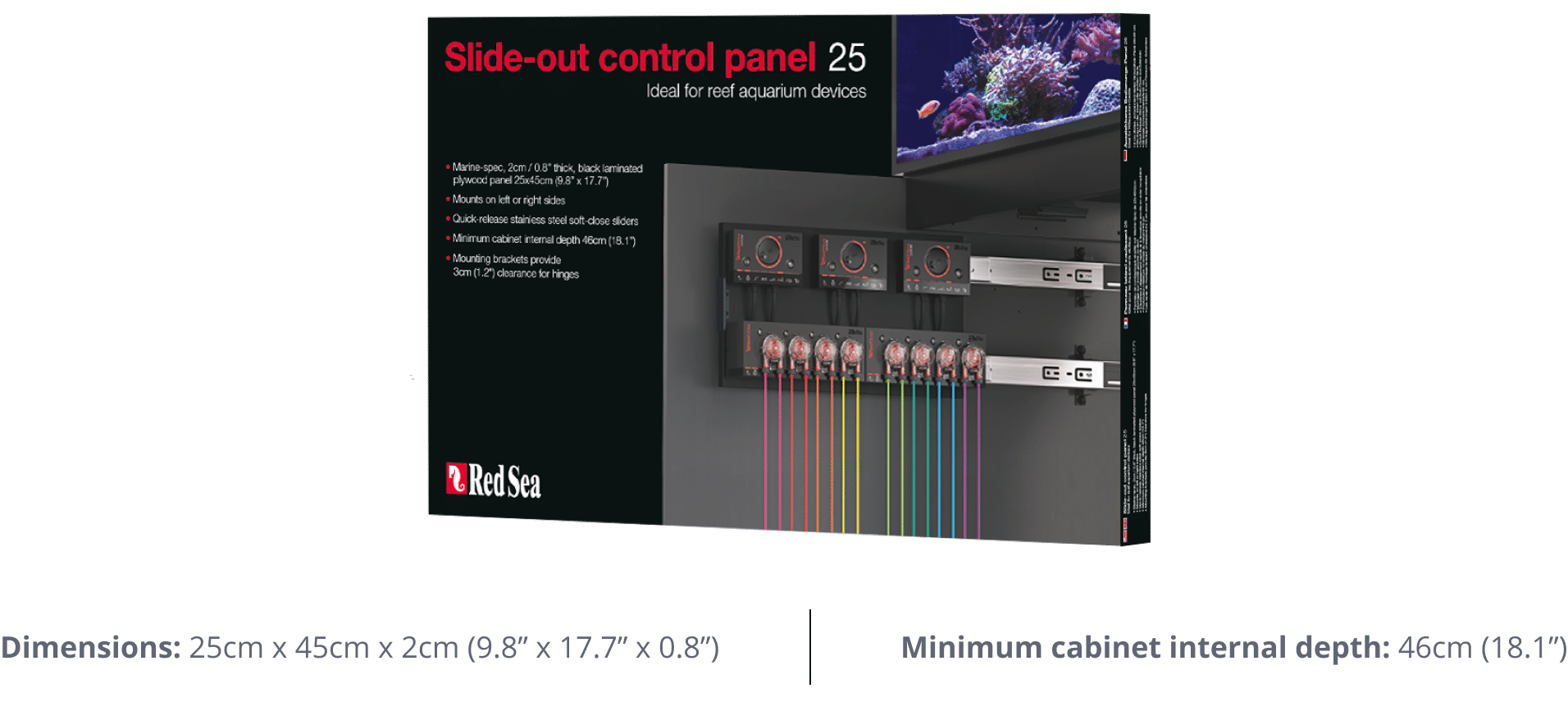 Nový výsuvný ovládací panel Red Sea, navržený s ohledem na potřeby hobbyistů, vám pomůže maximálně využít prostor stolku tím, že umístí dávkovače, ovladače a další zařízení na jedno snadno přístupné místo.