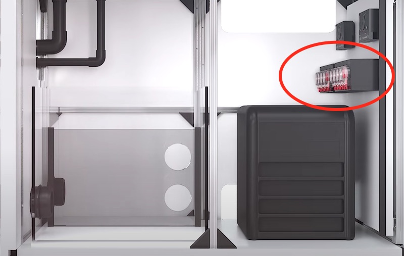 Ovládací panel je navržen tak, aby se vešel na obě strany stolku, je vyroben z laminované překližky pro akvaristické použití s rychloupínacími lištami z nerezové oceli a měkkým zavíráním, což umožňuje snadnou montáž a přístup ke všem zařízením.