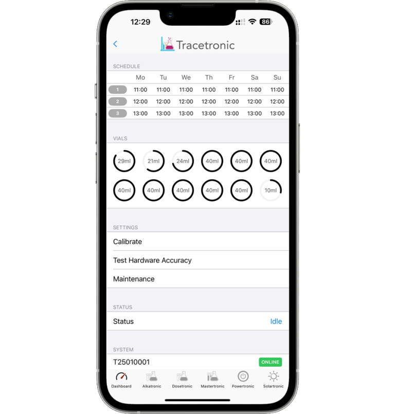 Each Trace Element has its own pre-defined schedule and information on vial setting amounts that will communicate with notifications as the vial gets close to empty.